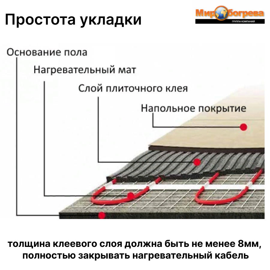 Теплый пол электрический под плитку Ридан TF-150 0,5 м2 нагревательный мат тонкий на самоклеящейся сетке