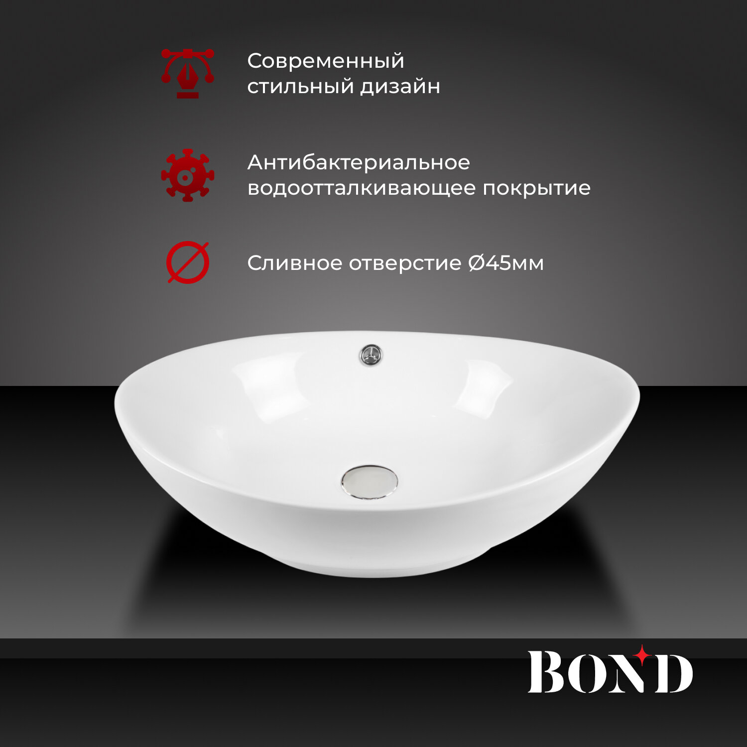 Отзывы на Раковина керамическая накладная BOND S55-590 овальная 59*38*19см белая с переливом