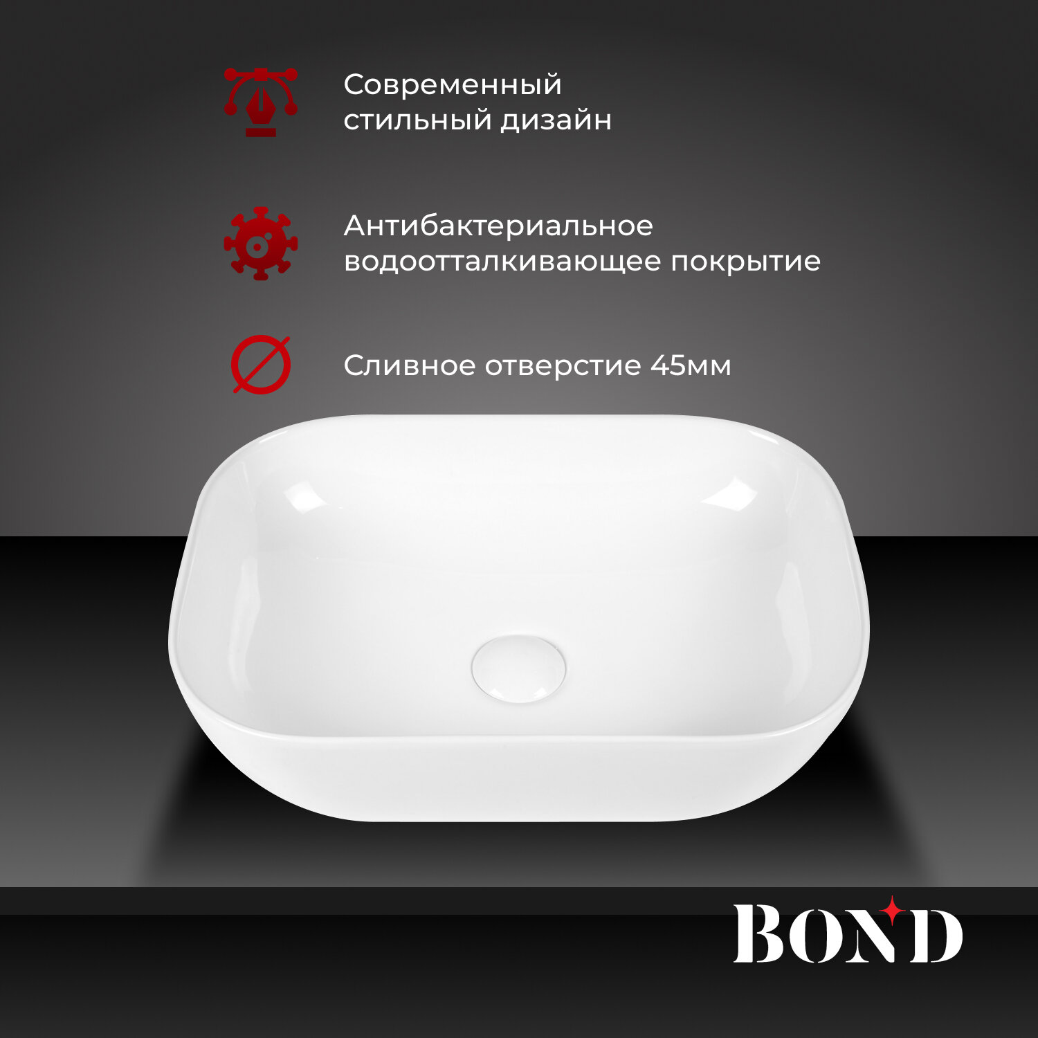 Отзывы на Раковина накладная BOND S54-450 прямоугольная 45,5*32,5*13,5см белая