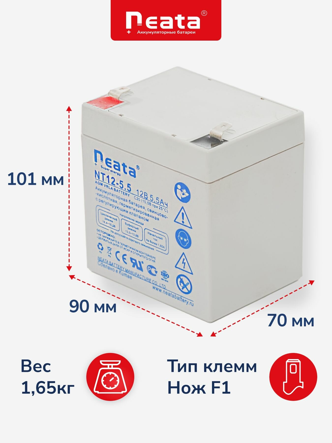 Аккумулятор 12v для ИБП NEATA 5.5 Ач информация: