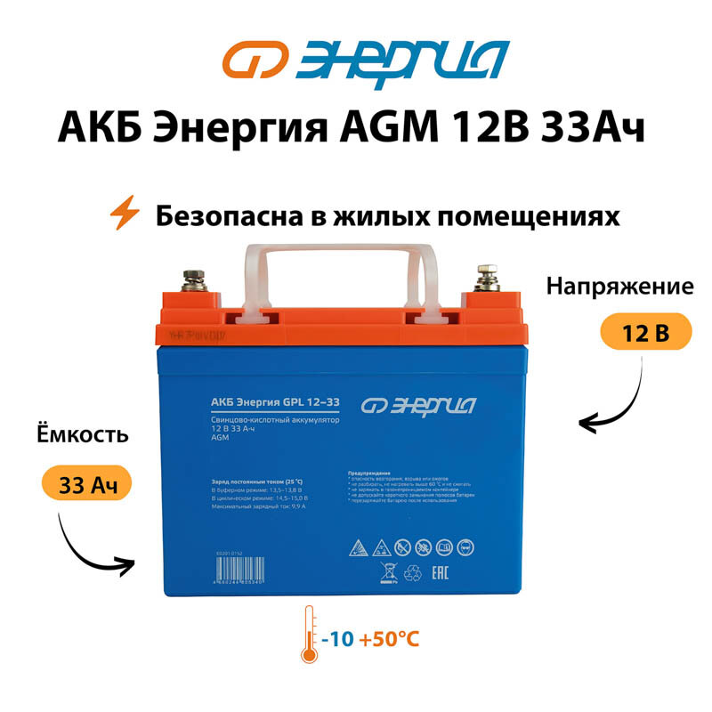 Аккумулятор для ИБП Энергия AGM 12v 33Ah информация: