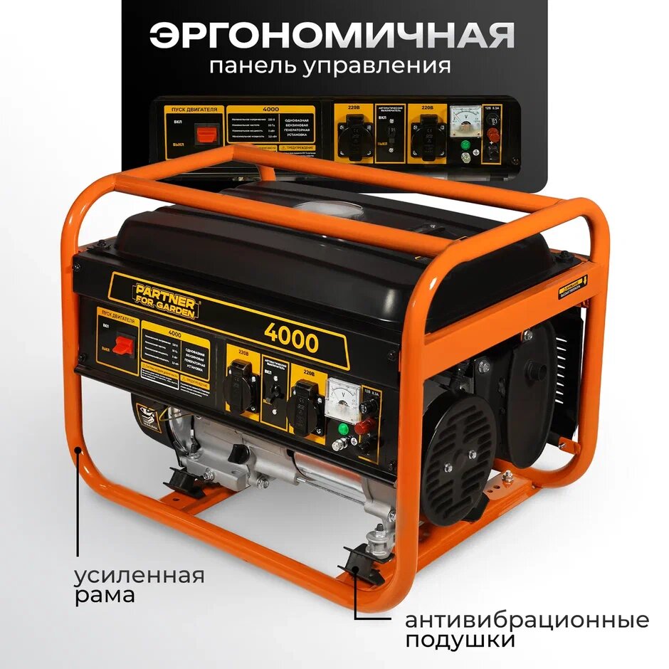Отзывы на Генератор бензиновый Partner for garden 4000 ( 4,4 кВа , 220 В / 12 В, 3 / 3,5 кВт, 50 Гц, 7 л. с )