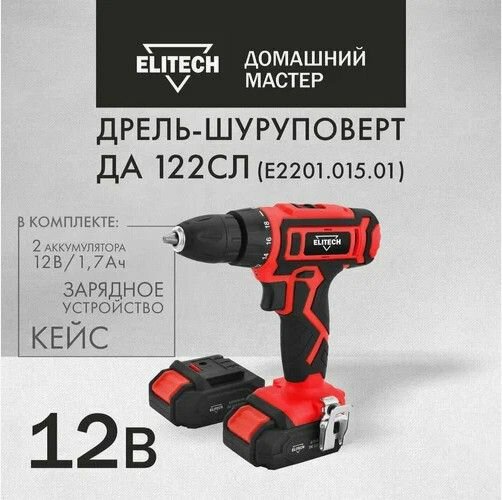 10 цен на Дрель-шуруповерт аккумуляторная Elitech ДМ ДА122СЛ (E2201.015.01) 12В, 2х1.7Ач, 0-350 1350об м, 23Нм