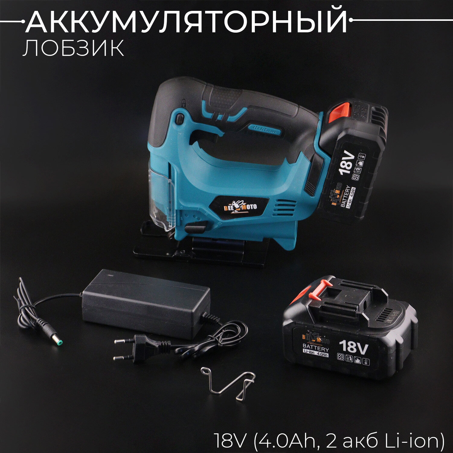 Аккумуляторный лобзик 18V (4.0Ah, 2 акб(Li-ion), +кейс, 1 полотно) информация: