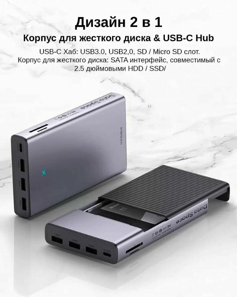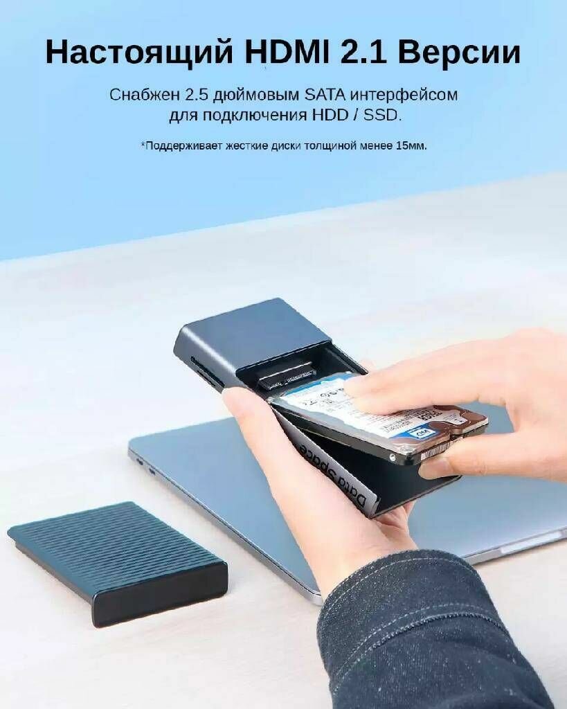 USB- хаб, USB - концентратор Hagibis USB-C с внешним корпусом для HDD/SSD 2.5", TF/SD, USB 3.0, HDMI (MC30 PRO) информация: