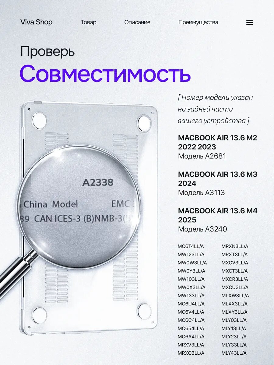 Чехол для Macbook Air 13 M2 M3 / Накладка на Макбук аир 13.6 2023 2024 1 001 ₽