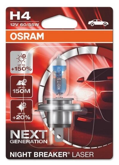 Отзывы на Лампа h4 12v 60/55w p43t night breaker laser +150% больше света 1 шт. Osram 64193NL