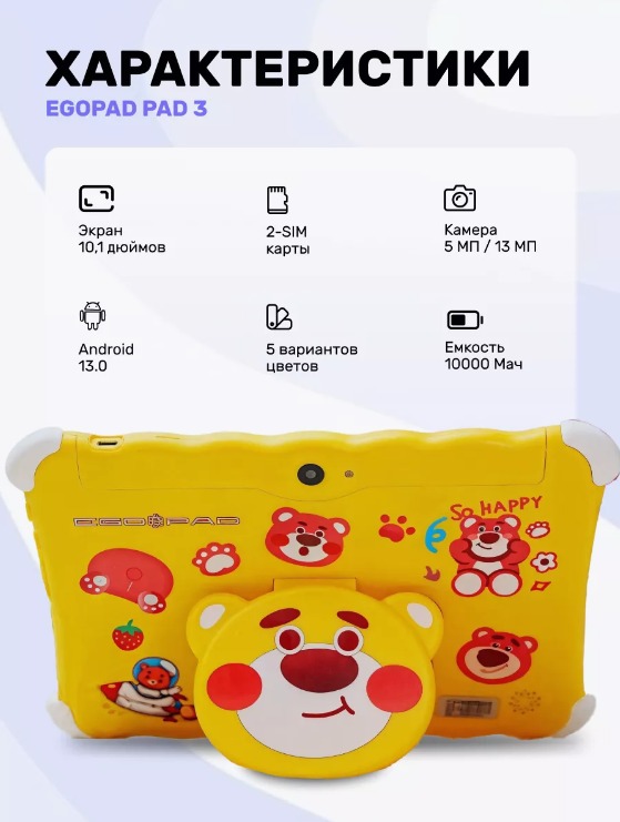 Отзывы на Детский планшет EGOPAD PAD 3 с функцией родительского контроля, 6/128 ГБ, Андроид 13, 10.1", желтый