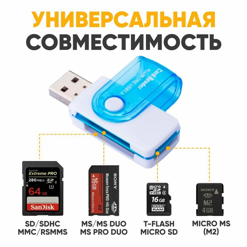 Картридер универсальный 480 Mbps Card Reader SD MMC MicroSD SD TF MiniSD M2 MS MicroMMC информация: