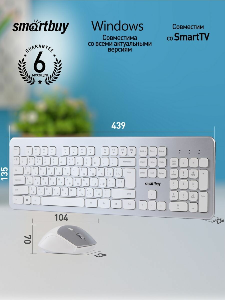 Отзывы на Комплект клавиатура + мышь SmartBuy 233616AG-SW, беспроводной, с нано-приемником, 2400 DPI, серебристый