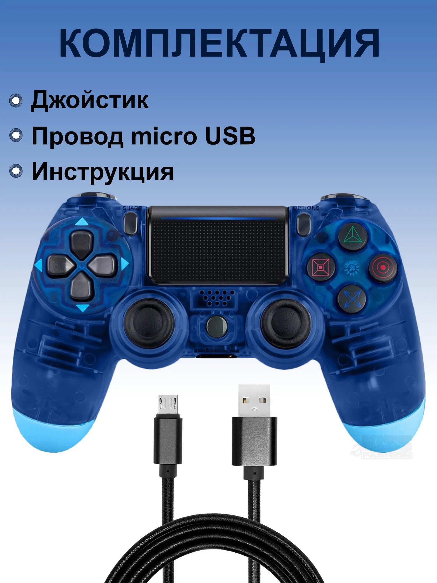 Беспроводной геймпад для PS4 / Джойстик Bluetooth для Playstation 4, Apple, Androind, ПК - cиний/синий прозрачный информация: