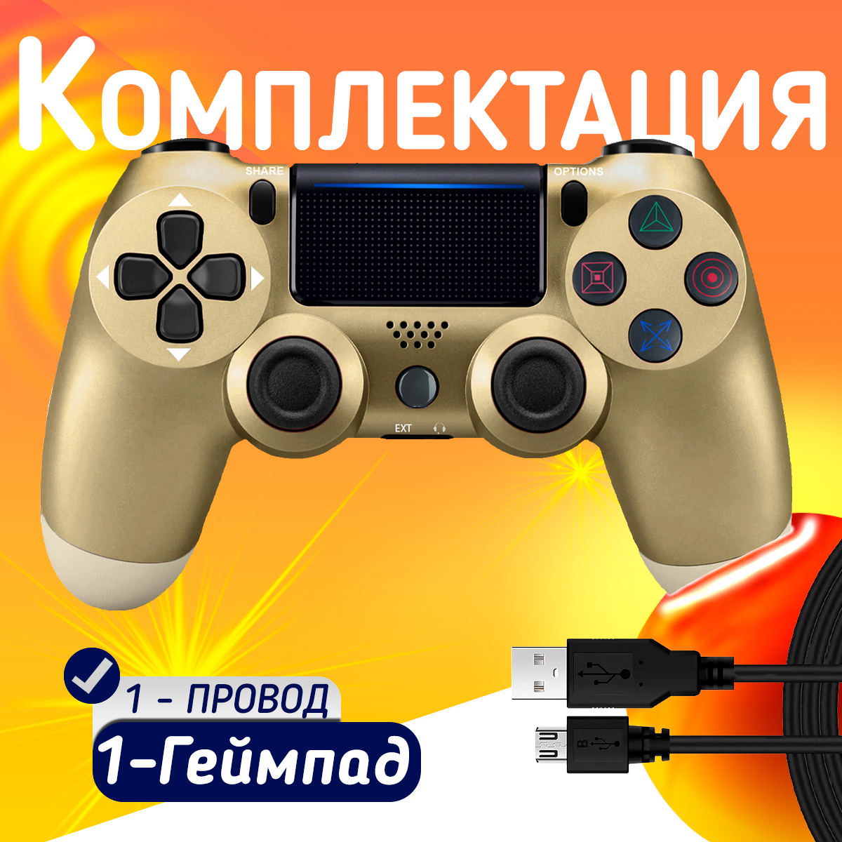 Беспроводной геймпад для PS4, ПК и смартфонов — универсальный джойстик с Bluetooth и виброотдачей, золотой информация:
