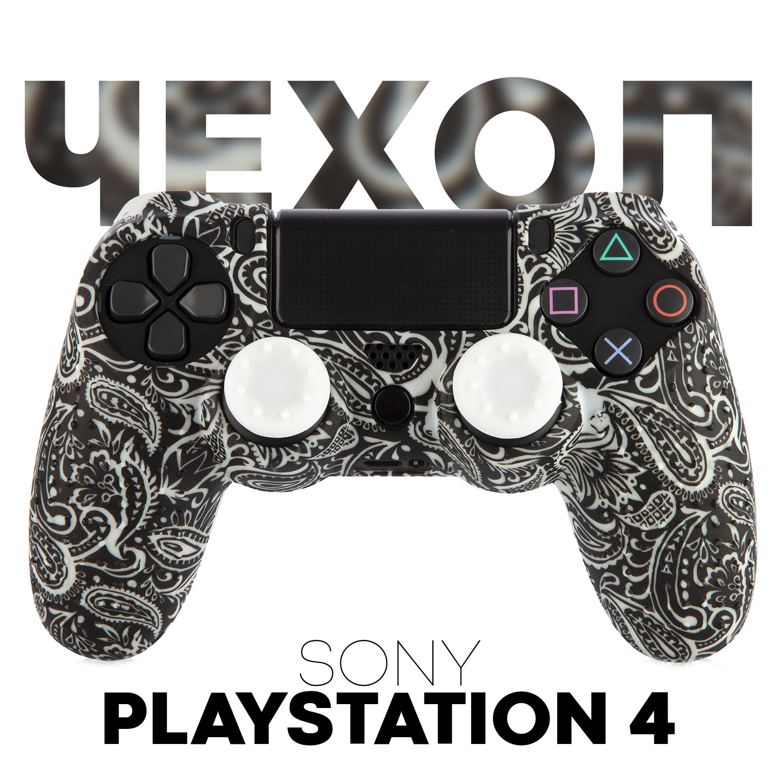 10 цен на Силиконовый чехол на геймпад Sony PlayStation 4 DualShock (джойстик Сони ПС4), фактурный, черно-белые турецкие огурцы