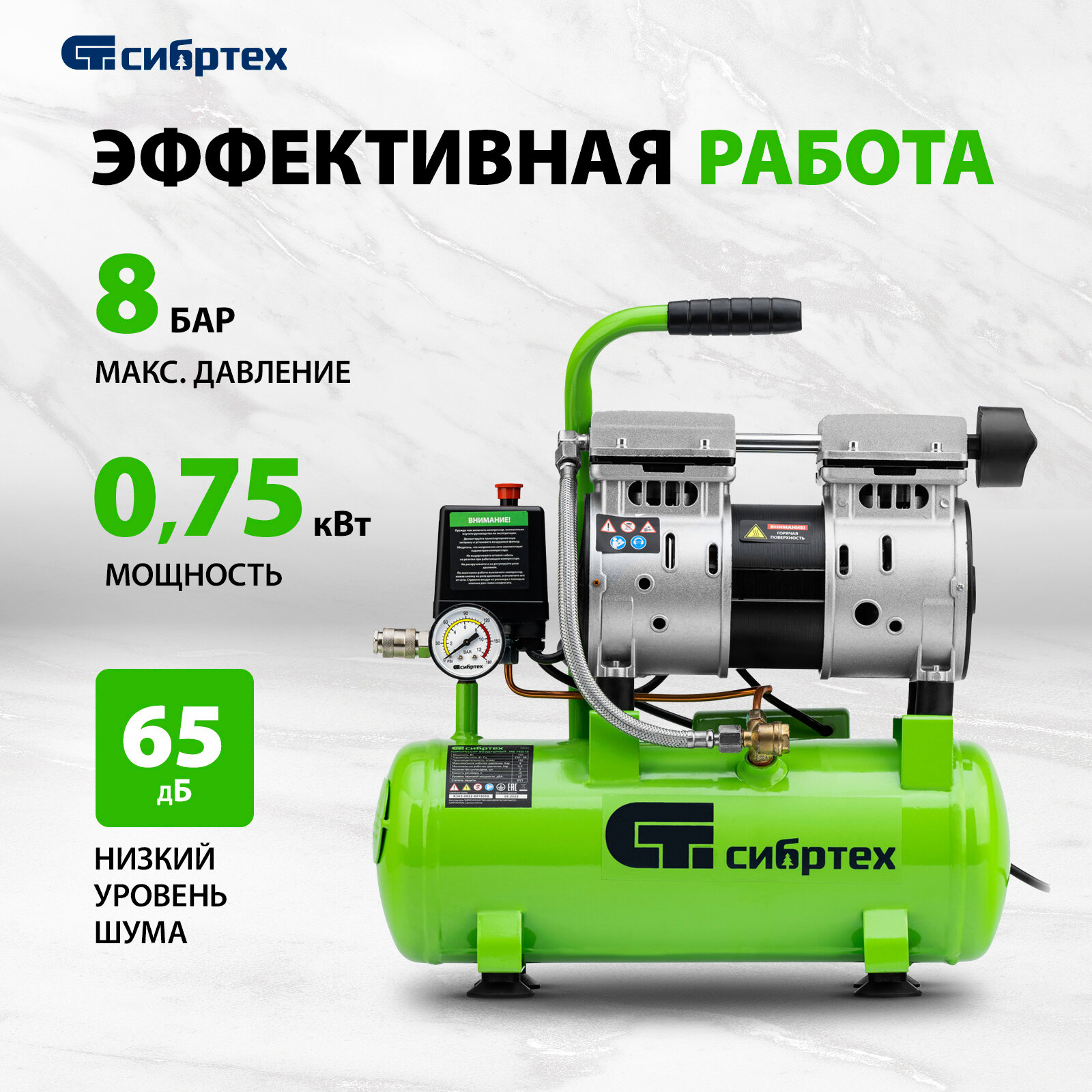 Отзывы на Компрессор воздушный 10л безмасляный Сибртех МБ 750/10, 750 Вт, 150 л/мин, малошумный, прямой привод, 58001