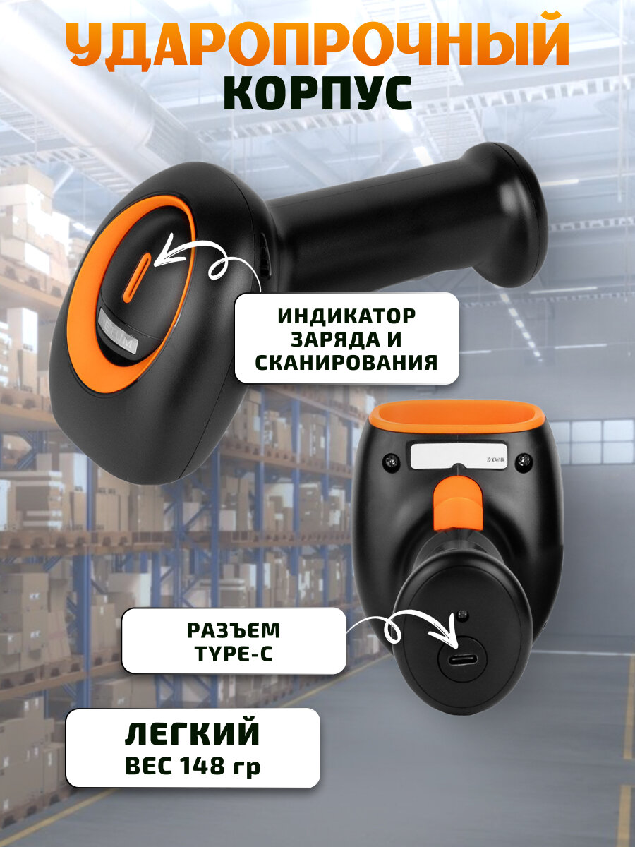 Сканер штрих-кодов 2D беспроводной Netum K22 черно-оранжевый информация: