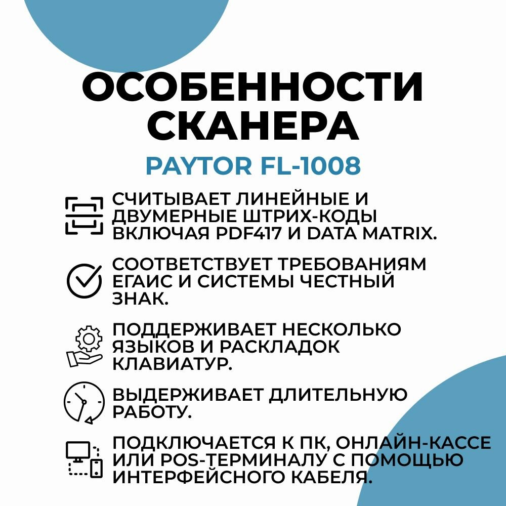 Сканер штрих кодов PayTor FL-1008 информация:
