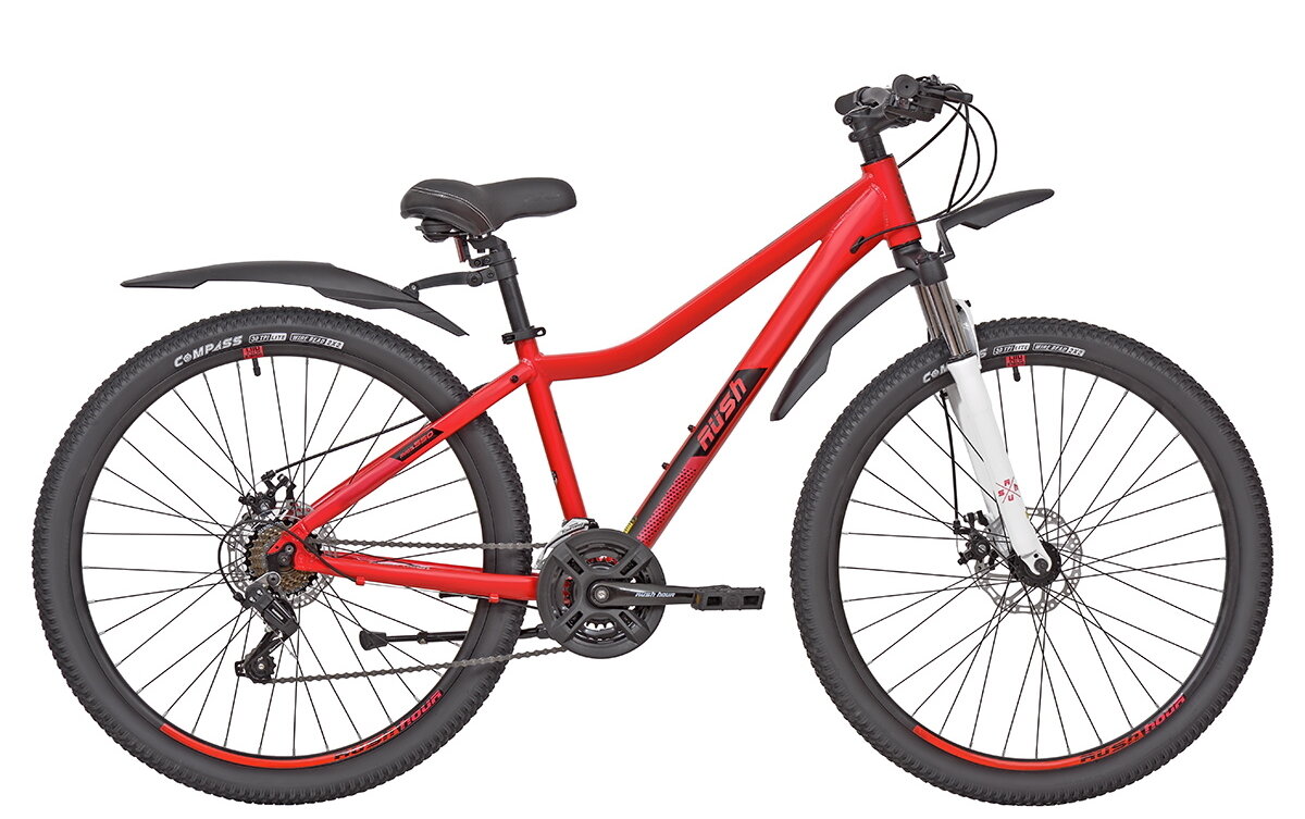 Отзывы на Велосипед алюминиевый горный 27,5" RUSH HOUR MISS 550 21 скорость красный рама 15" рост 145-165 см. для девушки для девочки взрослый с амортизацией переключатель SHIMANO дисковый скоростной