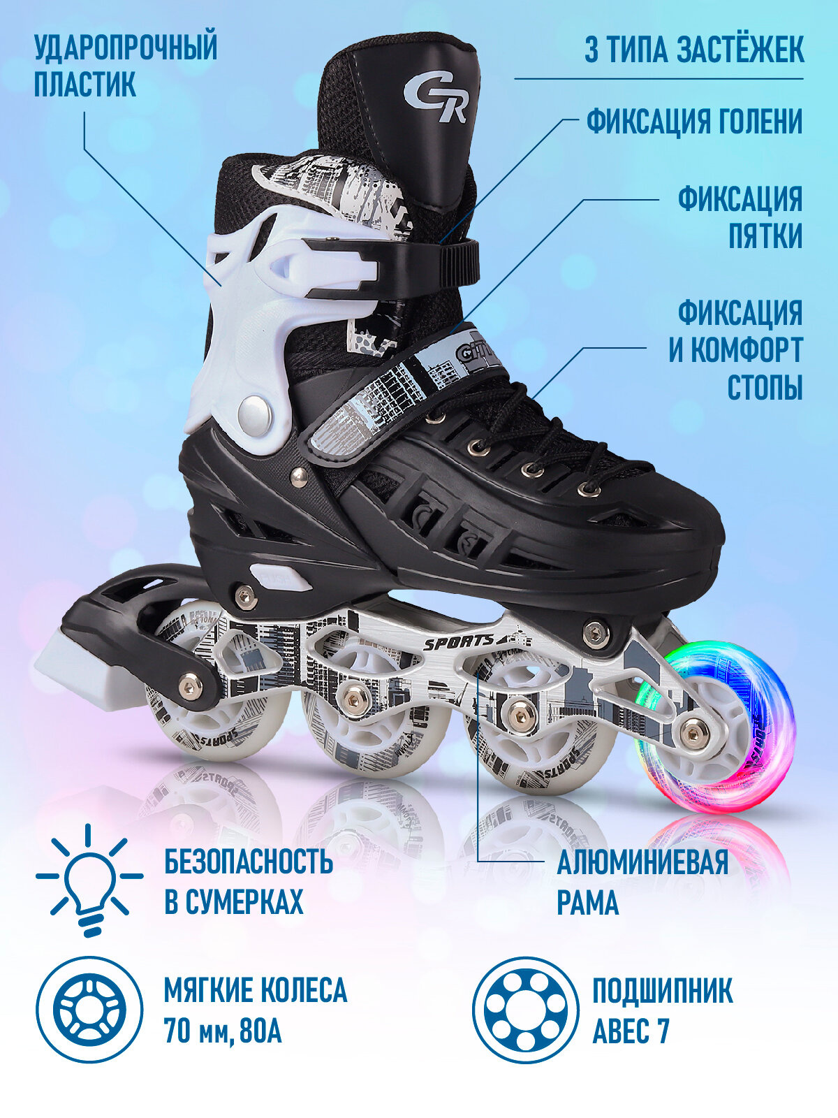 Роликовые коньки детские CITY-RIDE, PU колеса/первое светится, ABEC 7, размер M(34-38), раздвижные, JB8800096/M 5 110 ₽