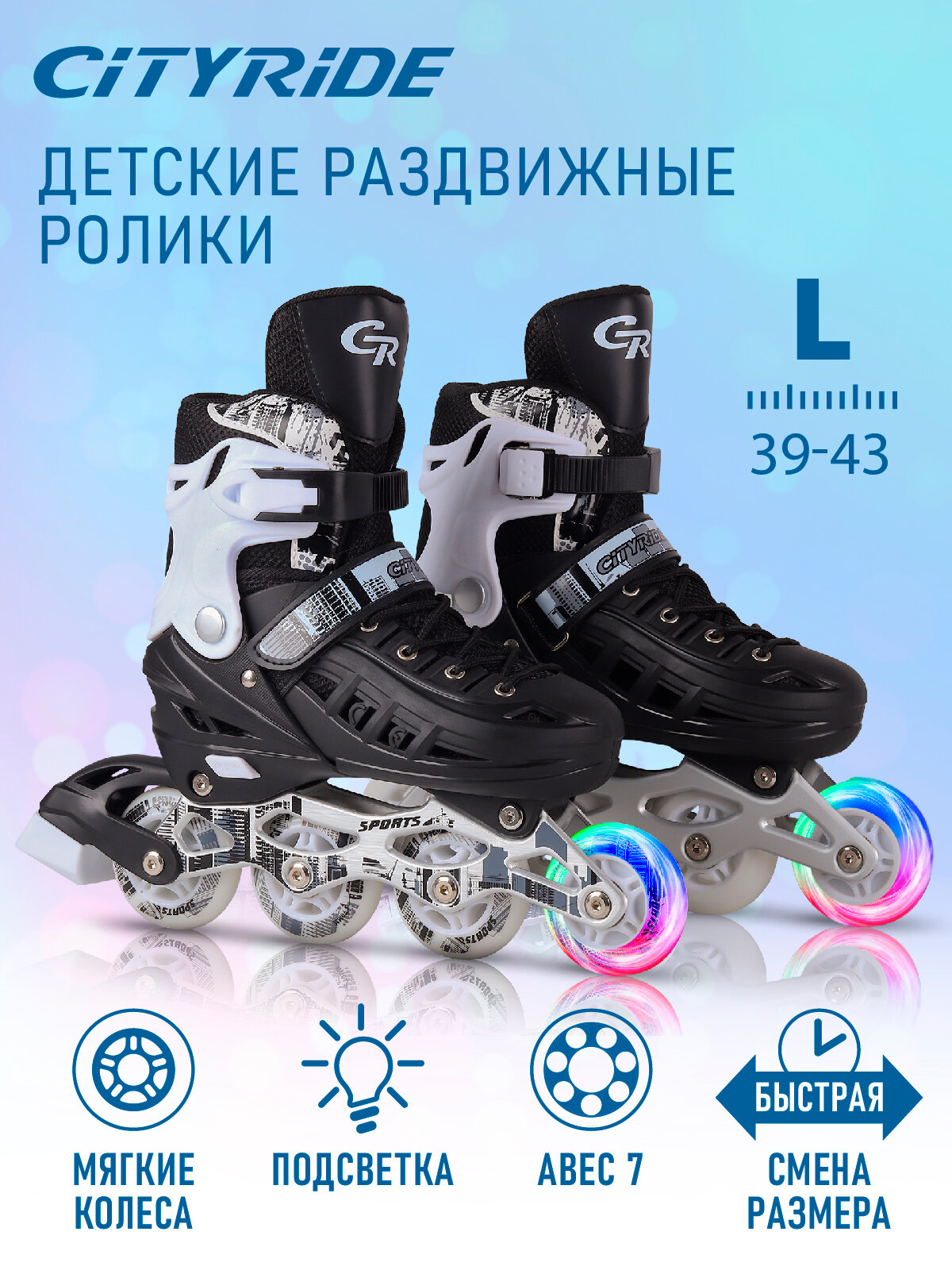 10 цен на Роликовые коньки детские CITYRIDE, PU колеса/первое светится, ABEC 7, размер L (39-42), раздвижные, JB8800084/L(39-42)