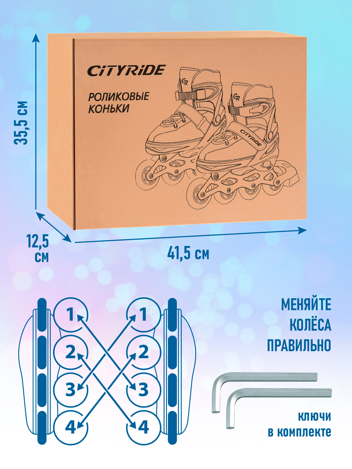 Роликовые коньки детские CITYRIDE, PU колеса/первое светится, ABEC 7, размер L (39-42), раздвижные, JB8800084/L(39-42) информация: