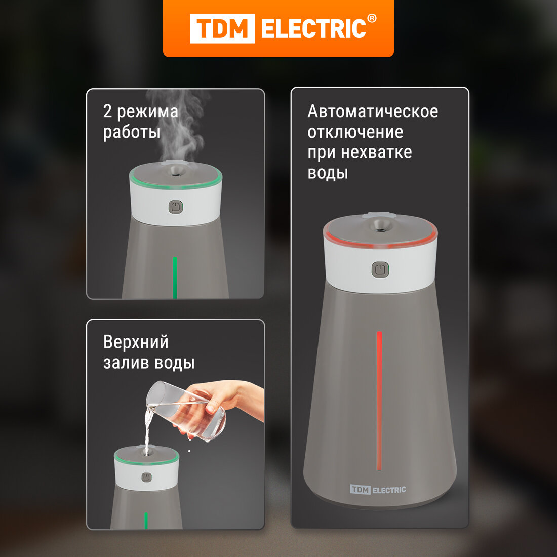 Увлажнитель воздуха портативный с подсветкой "Ареал мини", 0,38 л, RGB, серый, TDM ELECTRIC информация: