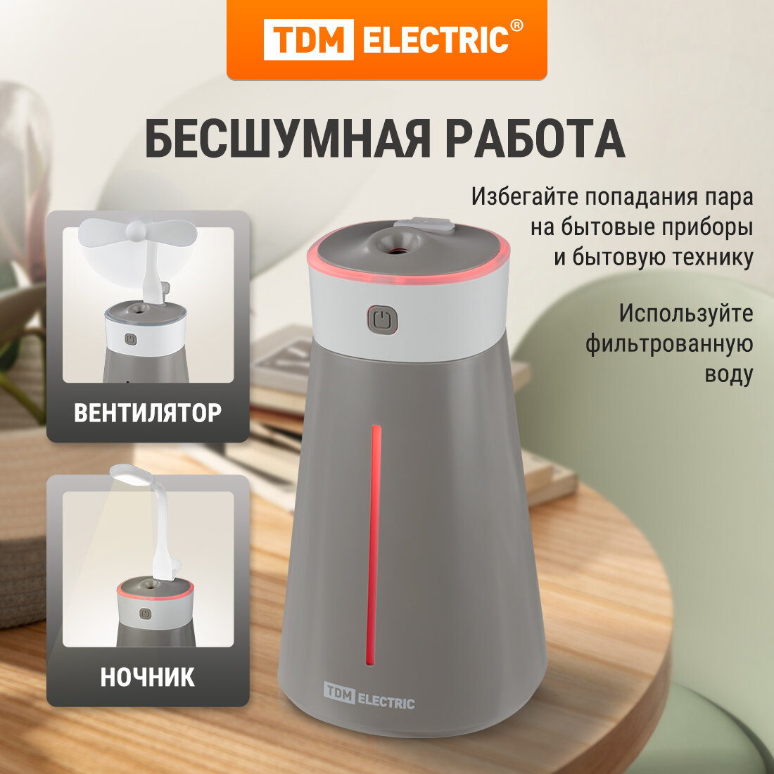 TDM Портативный увлажнитель воздуха "Ареал мини", 0,38 л, RGB, насадки: вентилятор, ночник, серый, SQ4013-0002 2 790 ₽