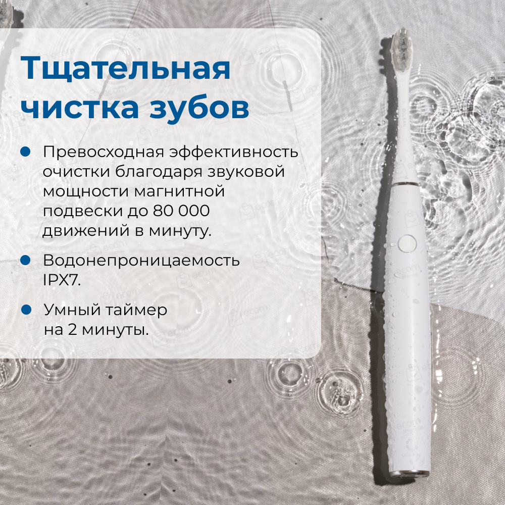 Электрическая зубная щетка Oclean Air 2Т, для чувствительных зубов, 1 сменная насадка, дорожный футляр, зарядка, ультразвуковая, низкий уровень шума, белый информация: