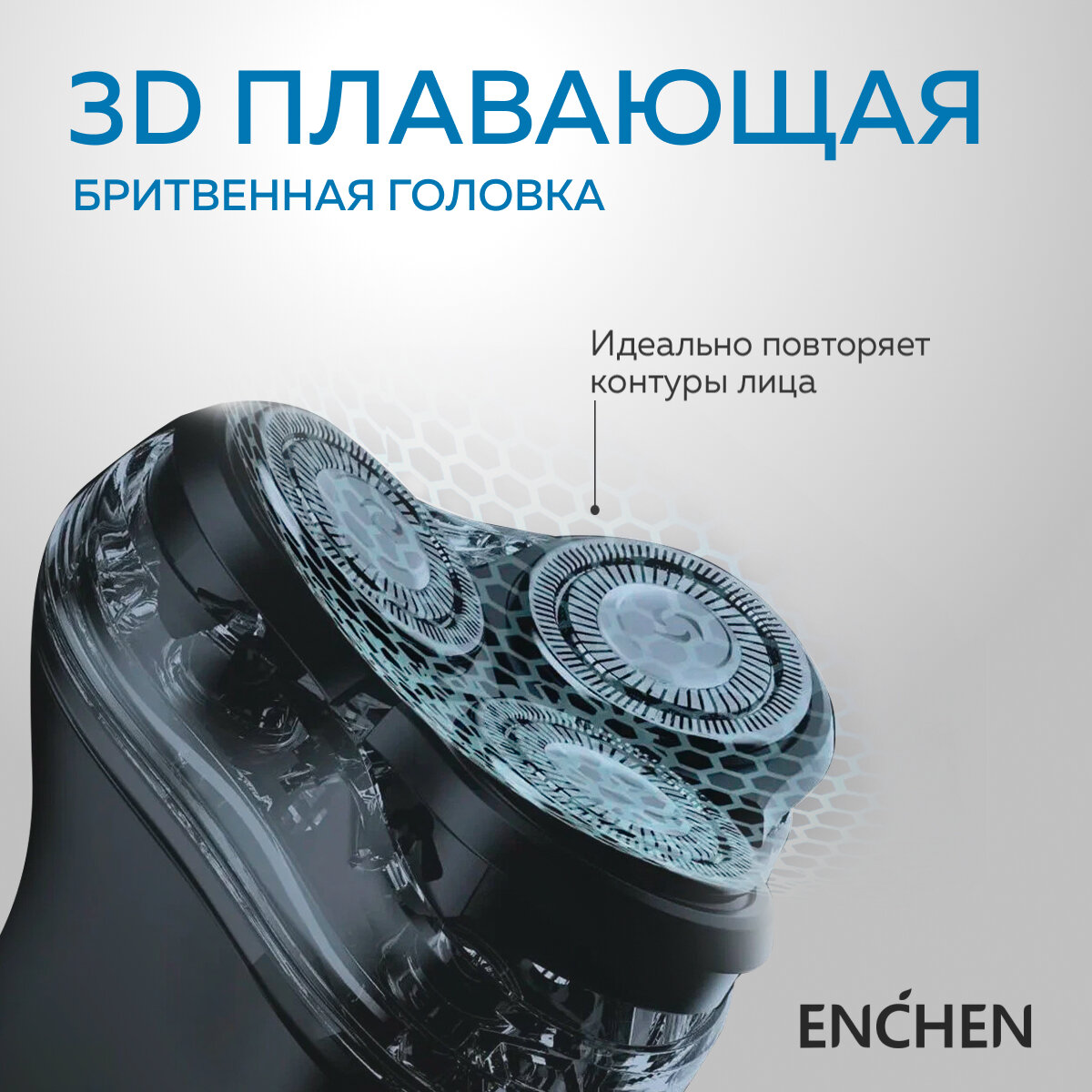 Электробритва мужская для лица Enchen BlackStone 3, роторная, 3 плавающие головки, Li-ion аккумулятор, IPX7