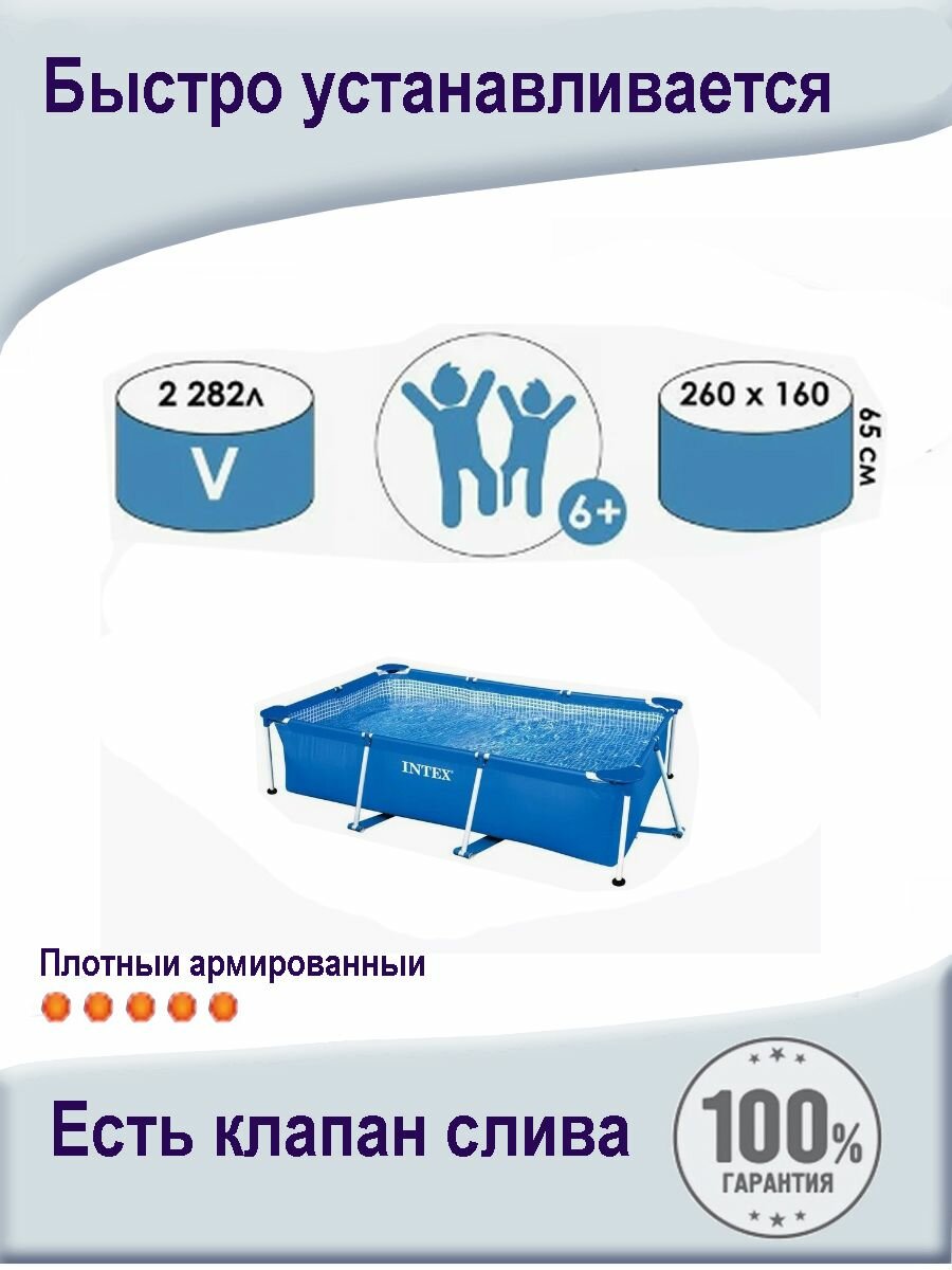 Бассейн каркасный прямоугольный Intex 28271, 260х160х65 см, объём 2282 л информация: