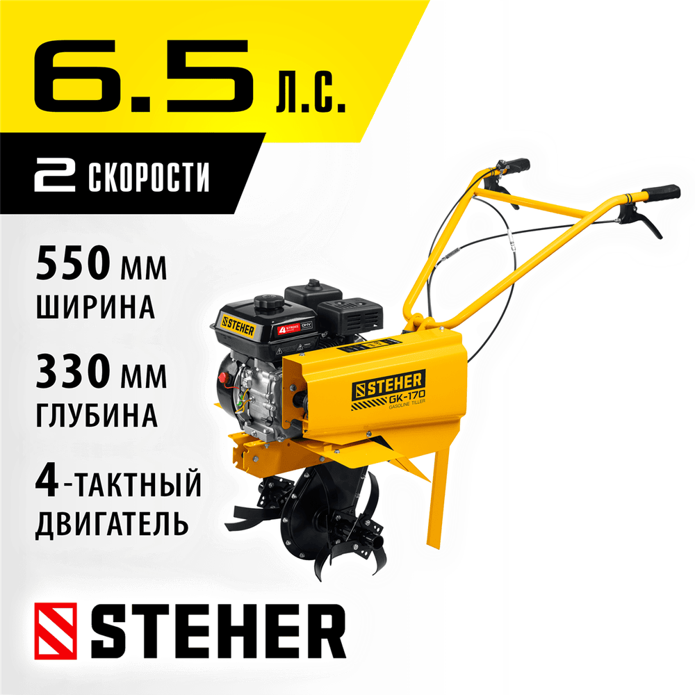 STEHER 6,5 л. с, 196 см3, фреза 330 мм, 2 скорости, культиватор бензиновый GK-170 информация: