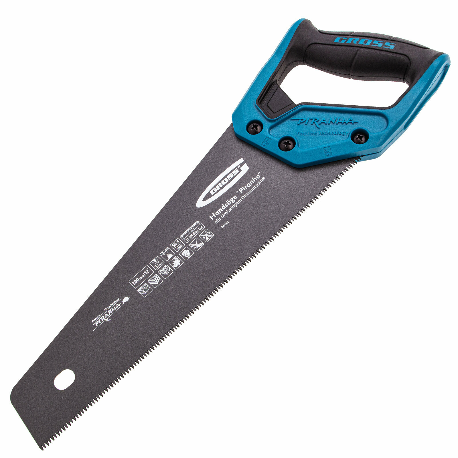 Ножовка по дереву Gross PIRANHA 300 мм, 11 TPI, 3D-зуб, тефл. покр. полотна, 2-х комп. рук-ка 24125 информация:
