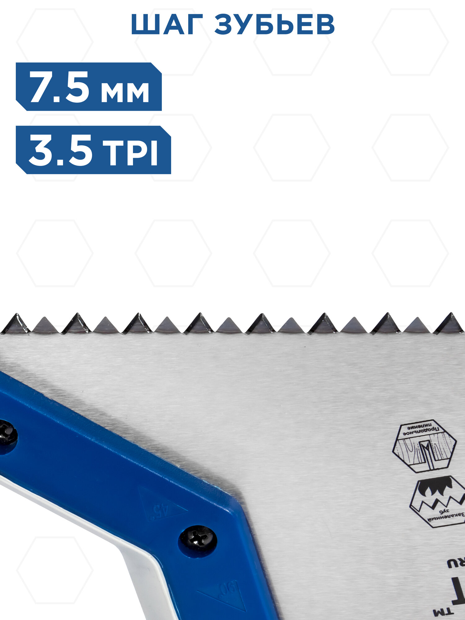 Ножовка по дереву кобальт 450 мм, шаг 3,5 мм/ 7 TPI, закаленный зуб, 3D-заточка, двухкомпо (248-825)