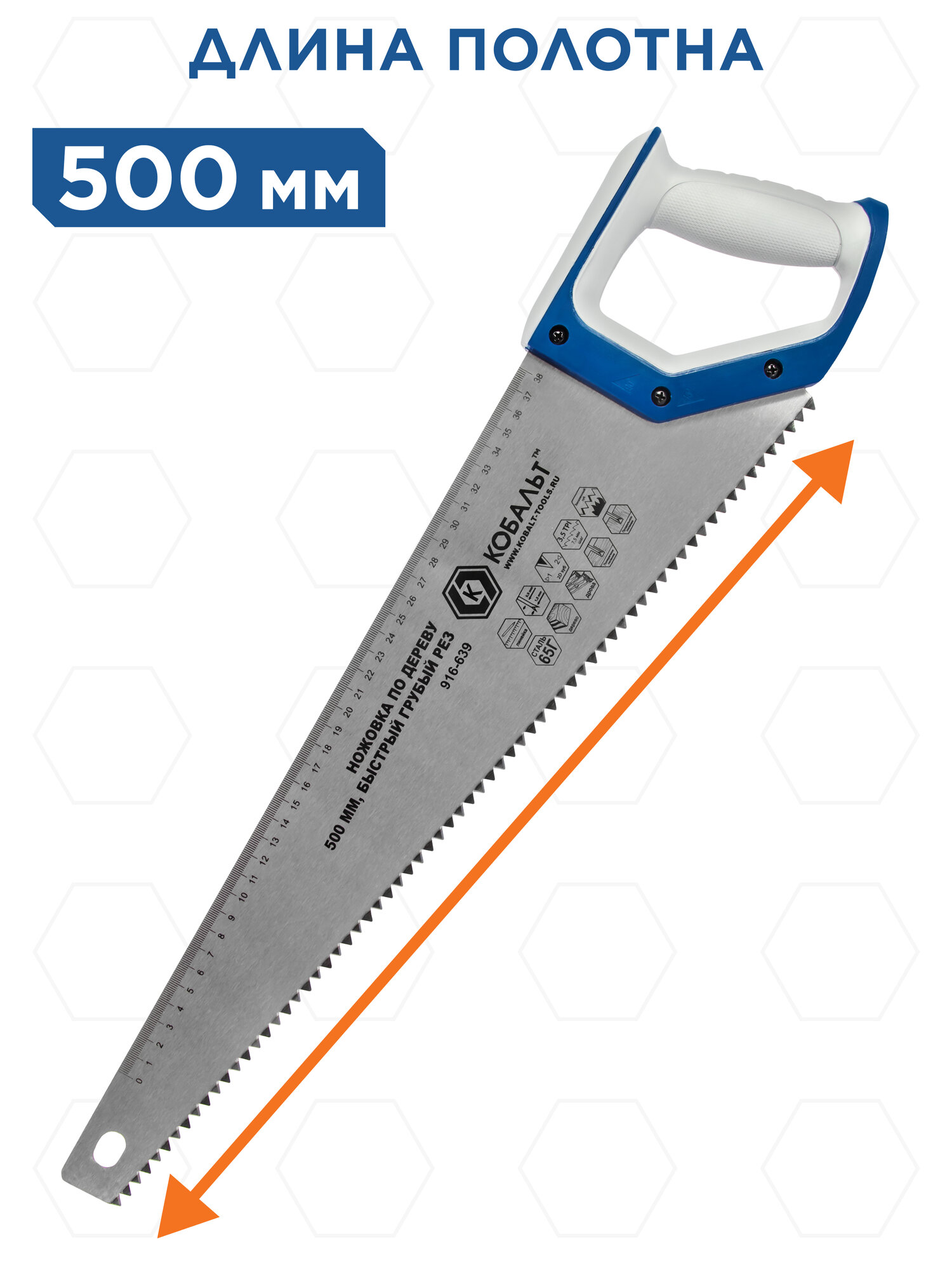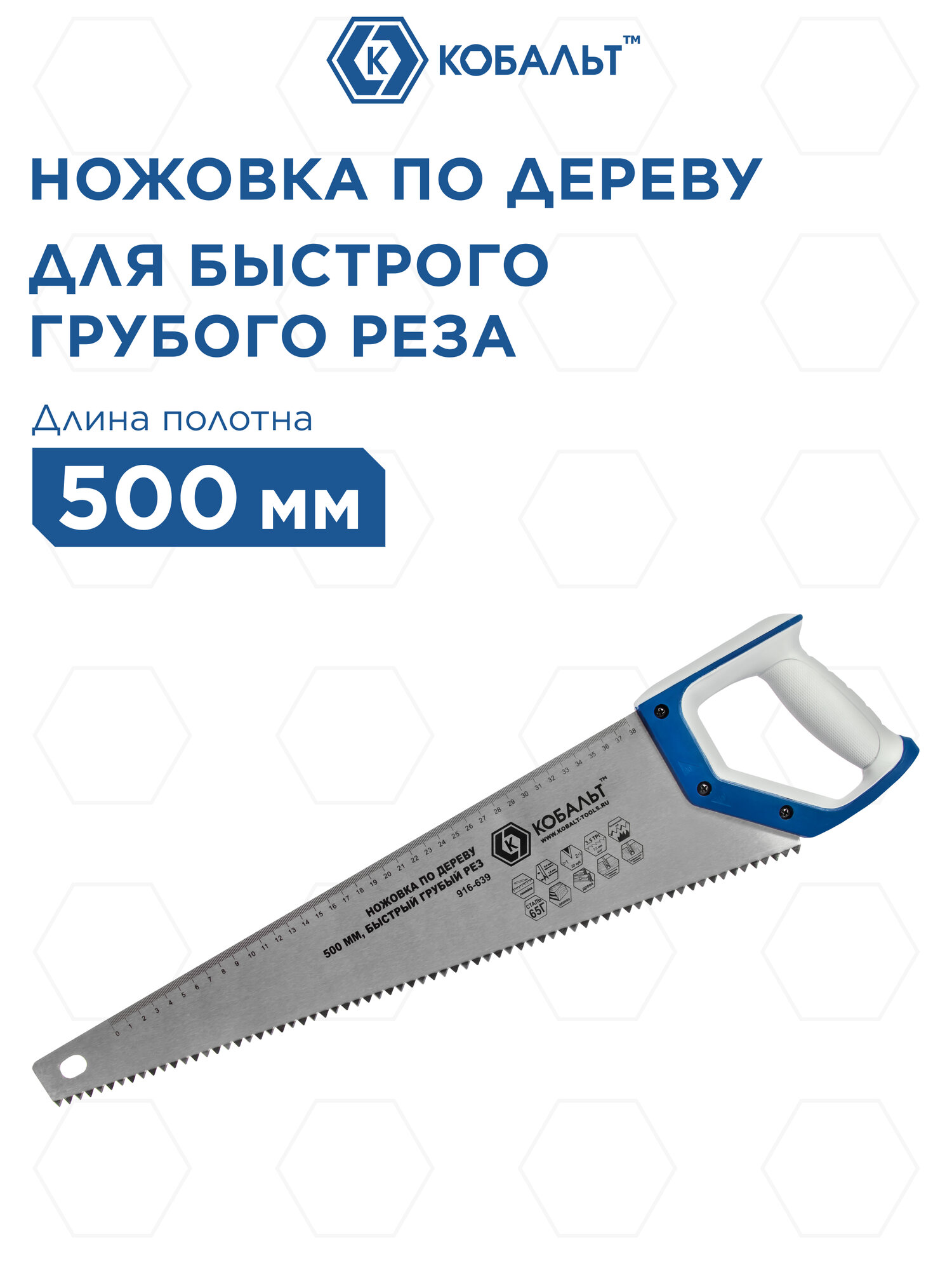 Ножовка Кобальт 50 см, шаг зуба 3,5TPI, закаленный зуб, быстрый рез, двухкомпонентная рукоятка информация: