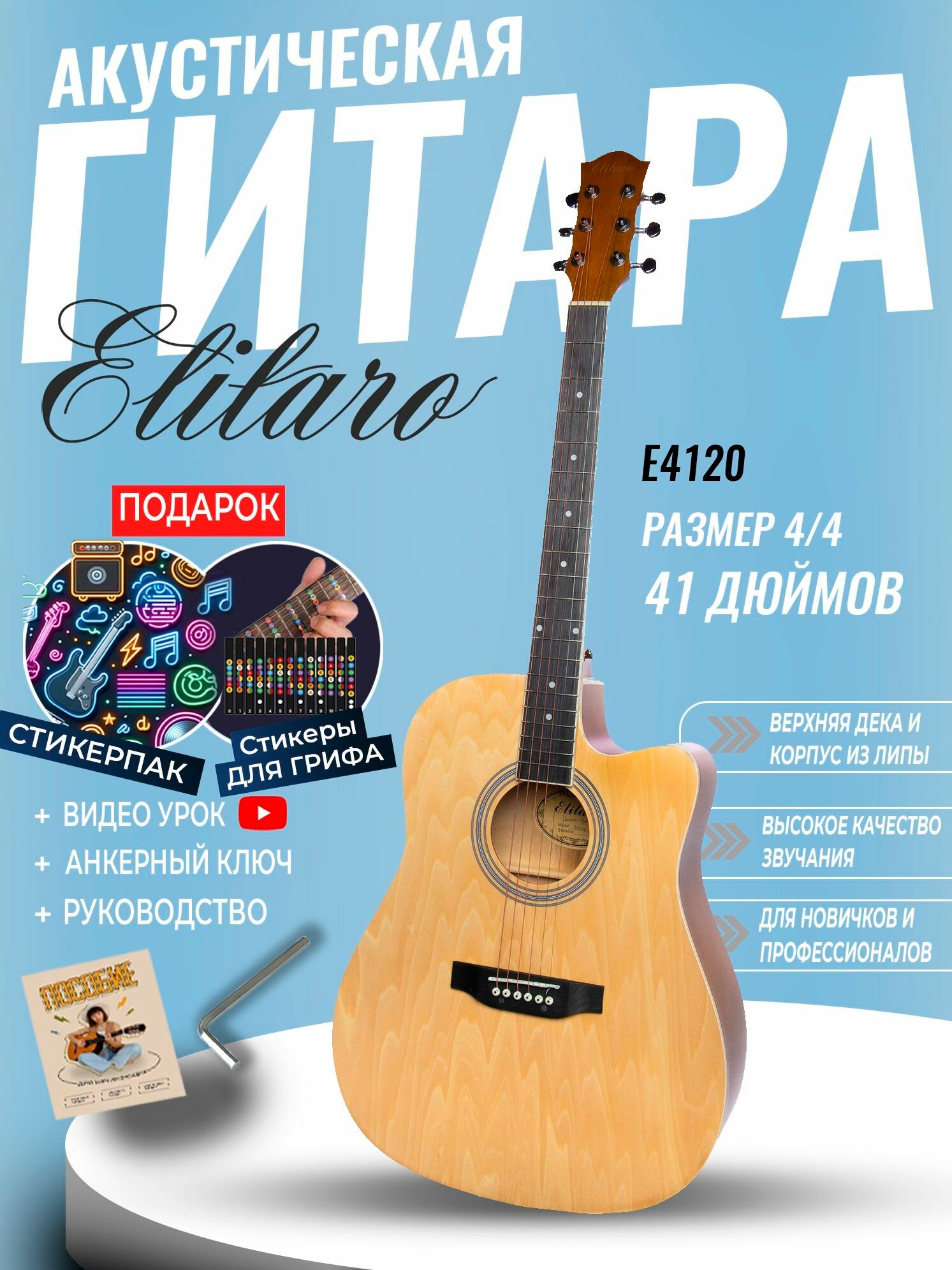 Гитара акустическая 41" Натуральная (Инструмент начинающего музыканта, Elitaro E4120 N) информация: