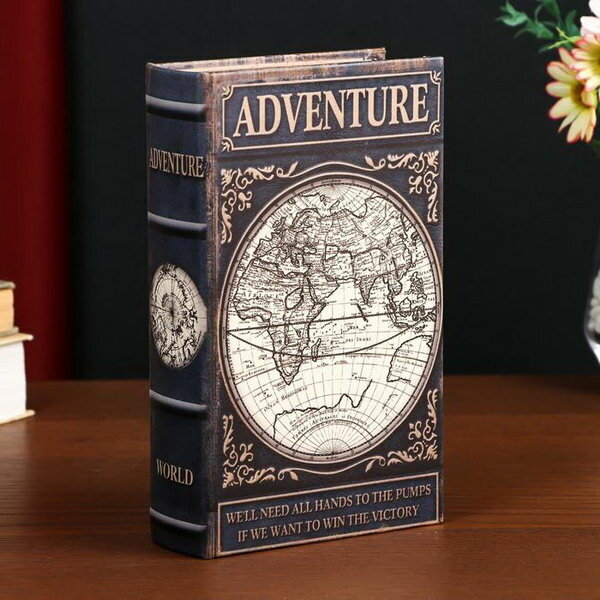 Шкатулка книга-сейф "Приключения. Карта", дерево, искусственная кожа, 21x13x5 см информация: