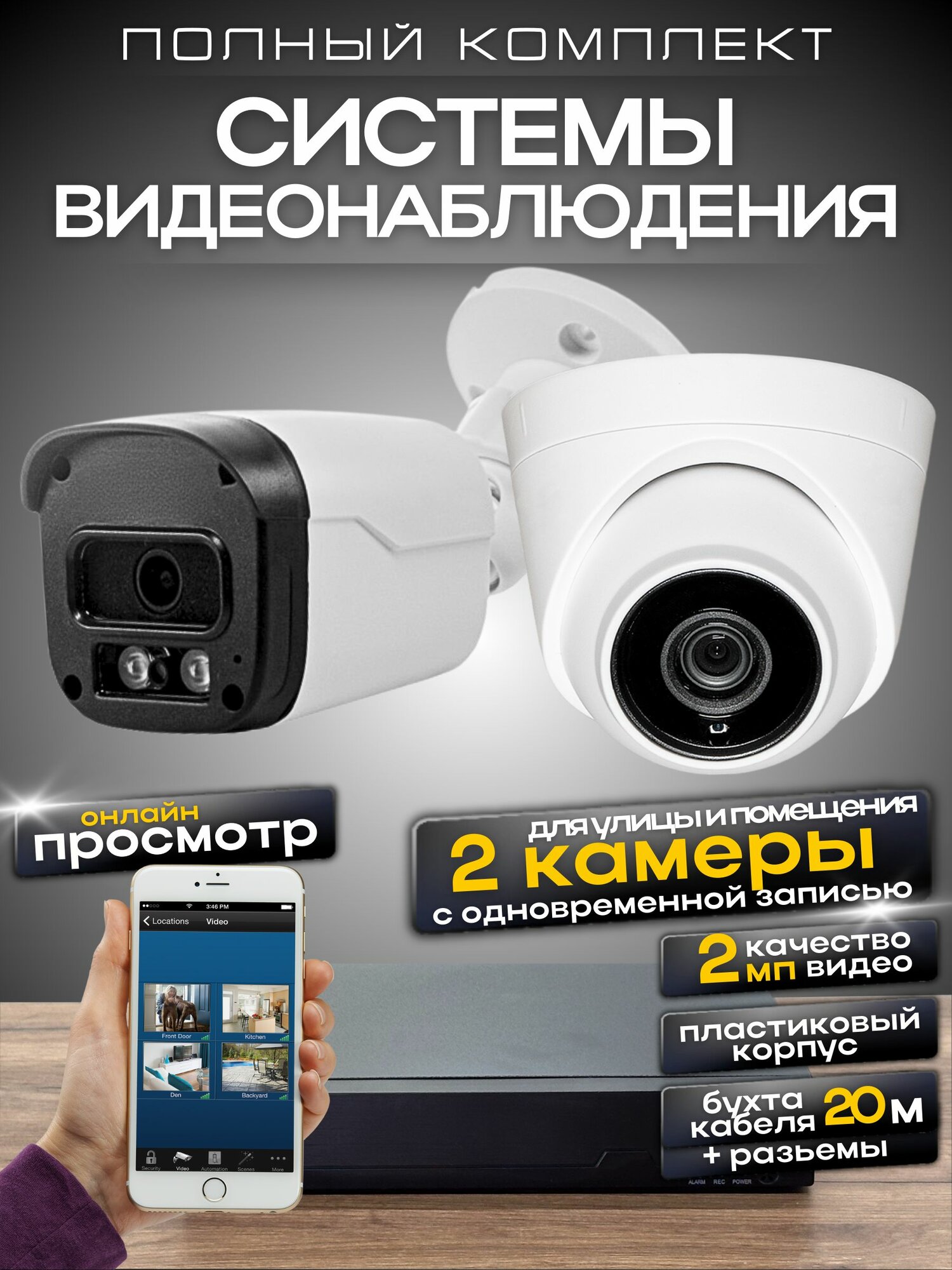 Готовый комплект видеонаблюдения FULL HD на 2 уличные камеры