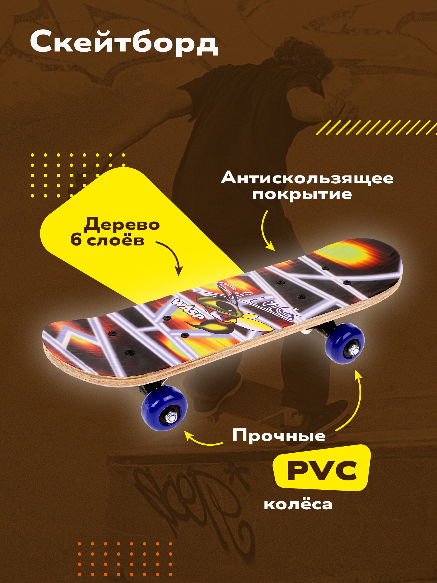 Скейтборд Наша Игрушка деревянный PVC колеса без света 60х15 см, Принт SKA (636243) 1 088 ₽