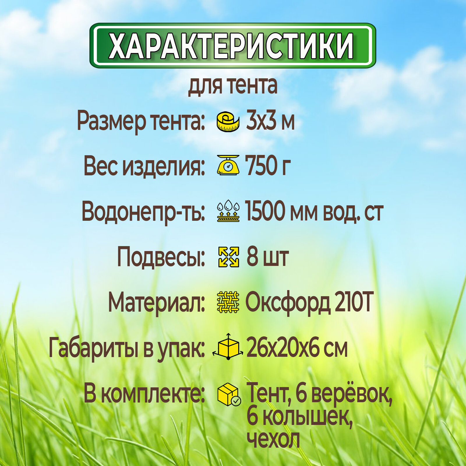 | Водостойкость тента | 1500 мм в.ст. |