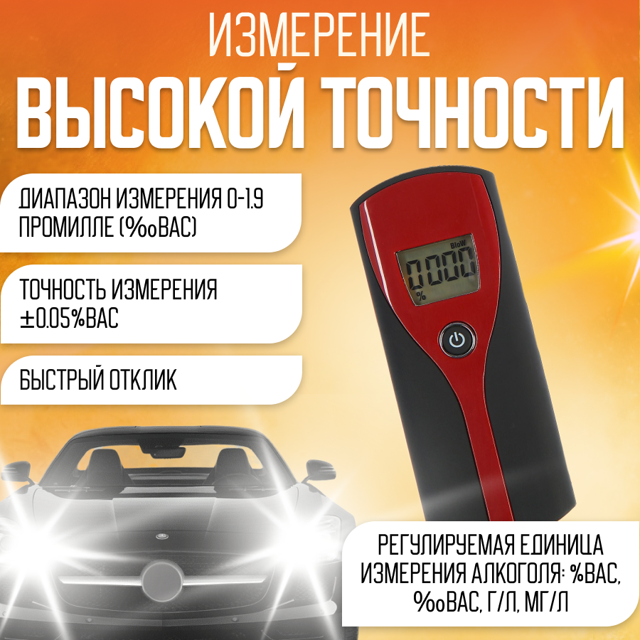Алкотестер карманный персональный, экспресс тест на алкоголь для водителей