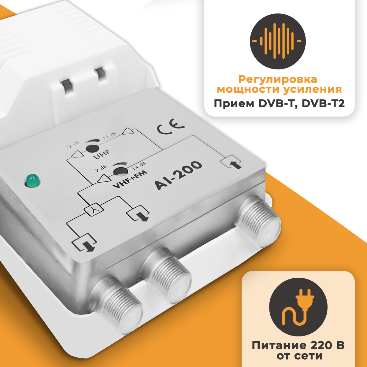 Усилитель тв сигнала DIVISAT DVS AI-200 питание от сети, квартирный, регулировка усиления информация: