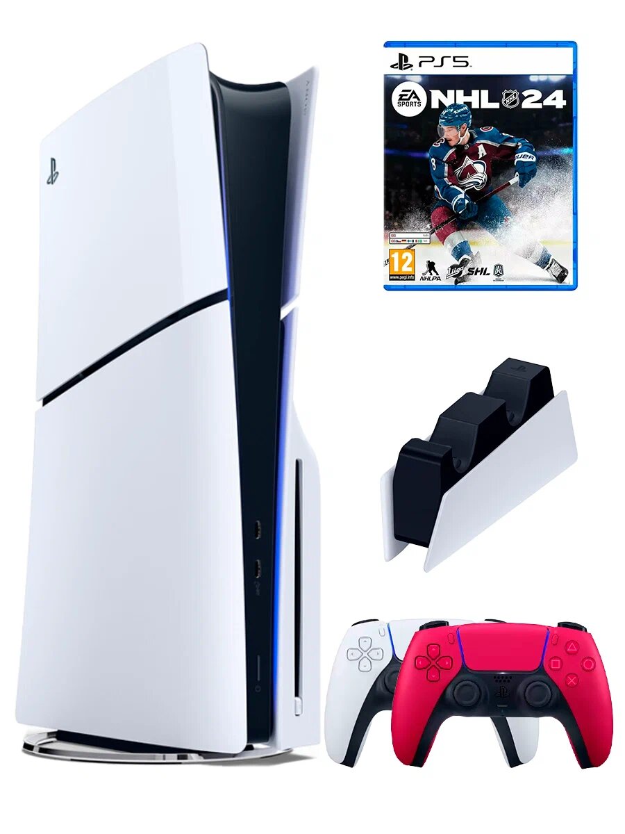 10 цен на PS5 (ПС5) Игровая приставка Sony PlayStation 5 Slim disk+2-й геймпад(красный)+зарядное+NHL 24, 1000 ГБ