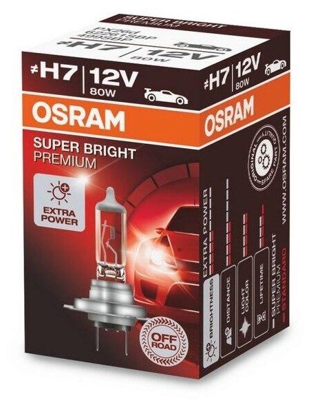 Лампа 12v h7 80w px26d osram off-road super bright premium 1 шт. картон 62261sbp 1 010 ₽