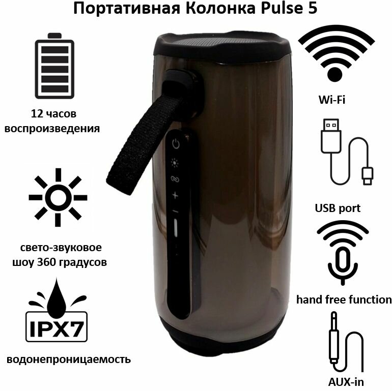 10 цен на Портативная колонка Pulse 5, черная, влагозащищенная, 12 часов работы