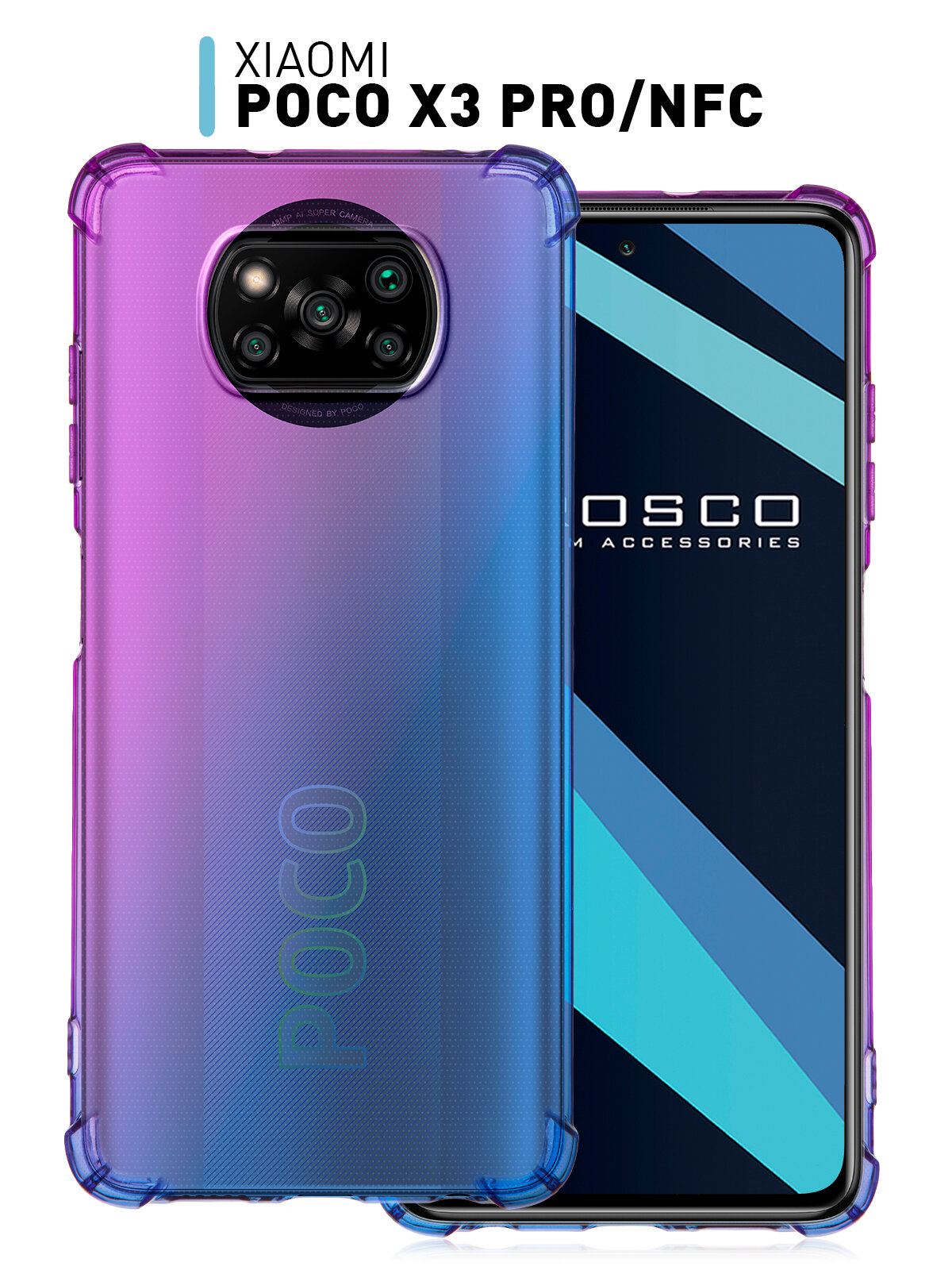 Противоударный силиконовый чехол Rosco на Xiaomi Poco X3, X3 NFC и X3 Pro (Сяоми Поко Х3, Х3 НФС и Х3 Про), прозрачный фиолетово-синий 349 ₽