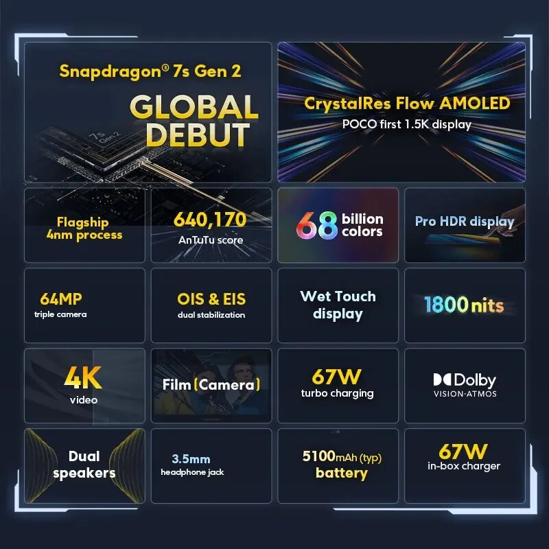| Заводская комплектация | Poco X6; зарядное устройство; чехол; скрепка; документация |