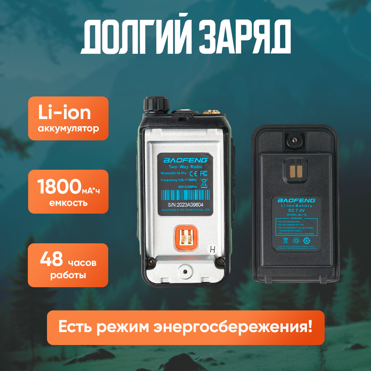 Рация Baofeng "UV-16", 10Вт, Li-Ion, FM-радио, 128 каналов, 1800мАч Зеленая информация: