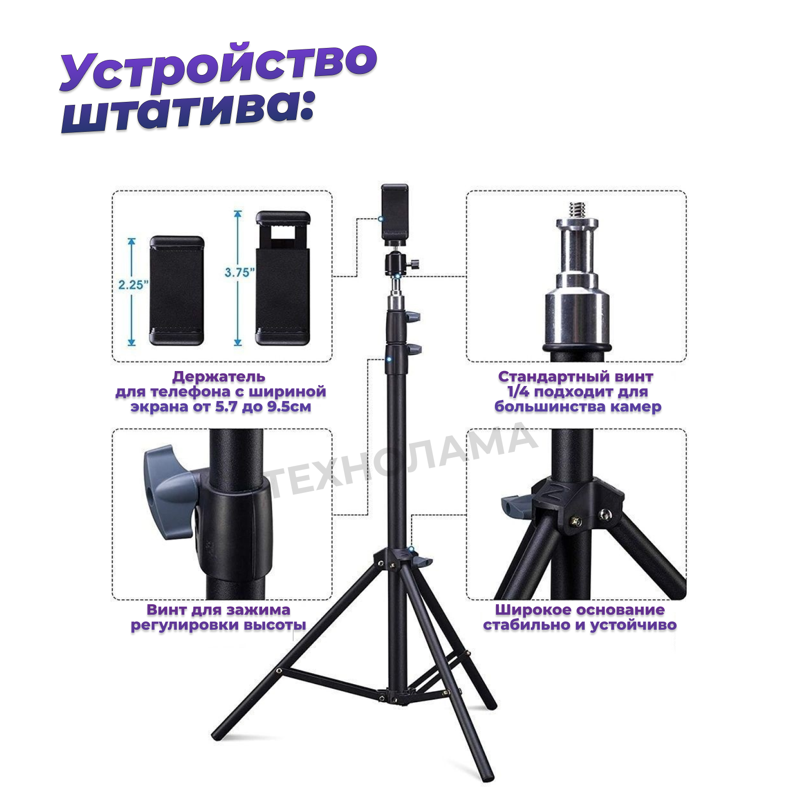 Высокий напольный штатив для камеры телефона и фотоаппарата