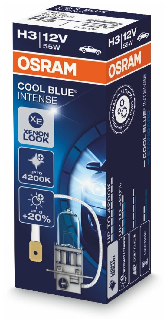 Лампа OSRAM COOL BLUE INTENSE (12V, 55W) H3 PK22s 64151CBI информация: