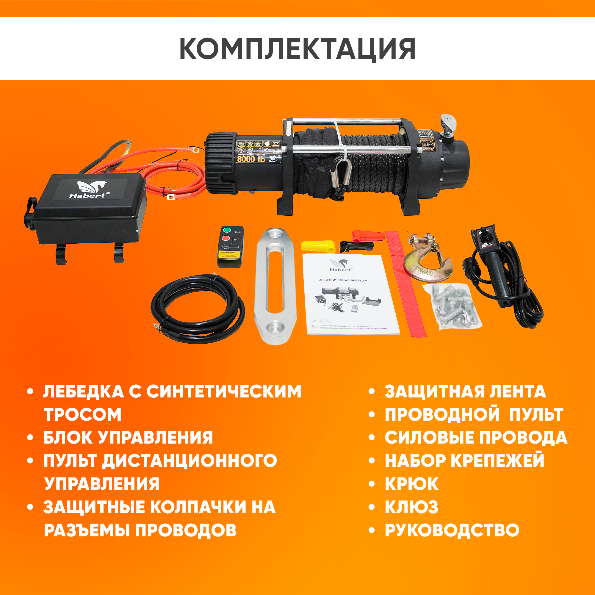 Лебедка электрическая Habert 8000LB синтетический трос 3,6 кВт/4,8 л. с. информация: