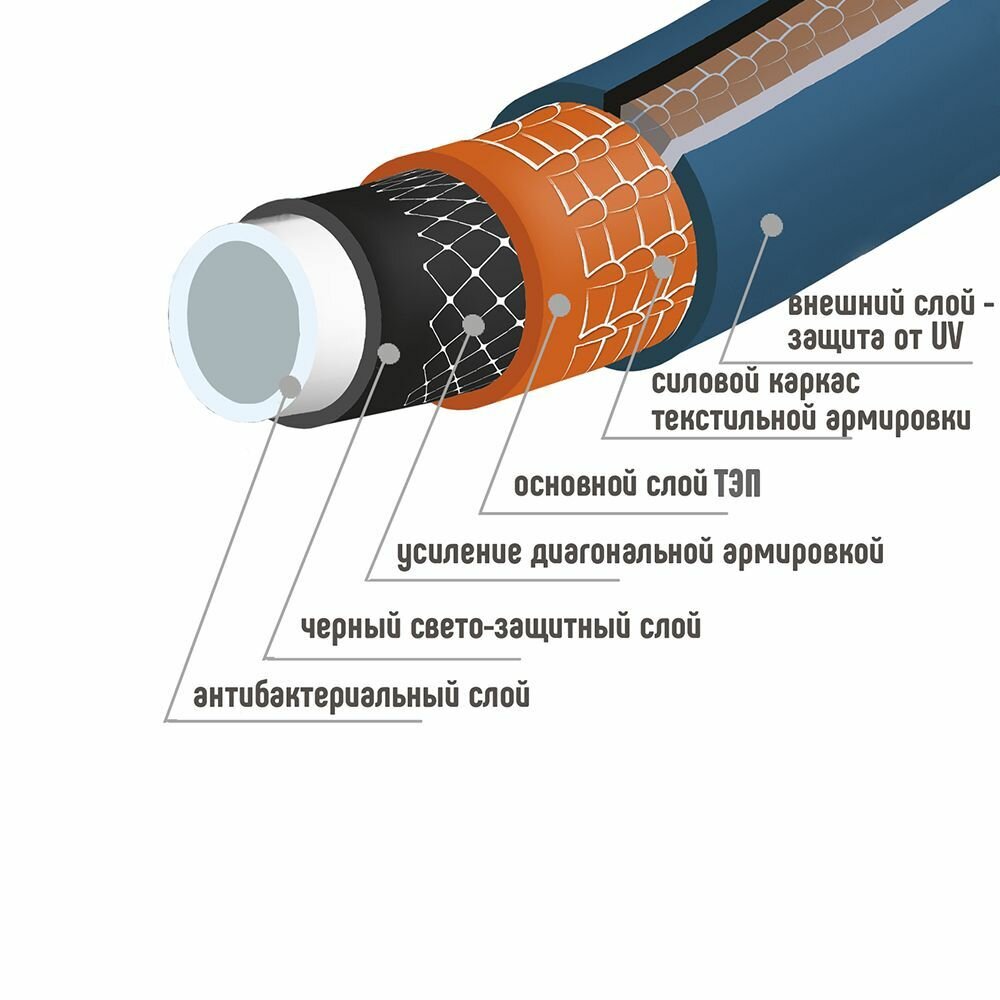 Шланг для полива "PRESTIGE", 3/4 дюйма, 25 метров, 6 слоев, ТЭП, цвет синий/оранжевый 7 238 ₽